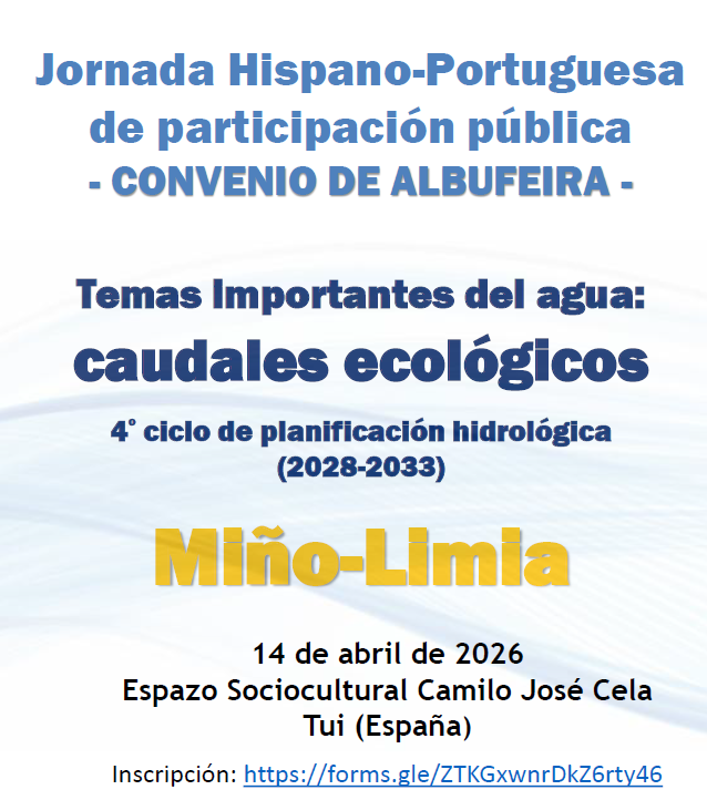 Neste âmbito, decorrerá no dia 14 de abril, pelas 16h00 (PT), a Sessão Luso-Espanhola de Participação Pública sobre a proposta de QSiGA para a Região Hidrográfica Internacional do Minho e Lima / Miño-Sil, que se realizará no Espazo Sociocultural Camilo José Cela, em Tui, Pontevedra, em formato presencial e online.