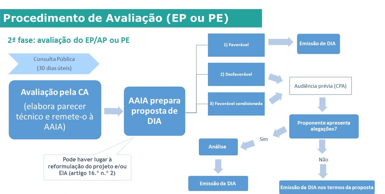 Com base no parecer final emitido pela Comissão de Avaliação e no relatório da consulta pública, a autoridade de AIA prepara uma proposta de decisão (Declaração de Impacte Ambiental – DIA), a qual pode ser favorável, favorável condicionada ou desfavorável.