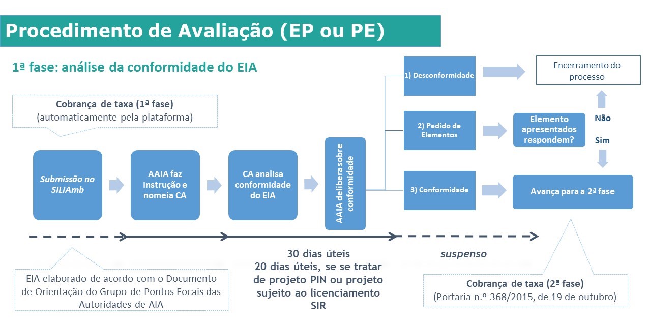 Uma vez constituída, a Comissão de Avaliação dá início à análise da conformidade do EIA, primeira etapa do procedimento de avaliação que tem como objetivo