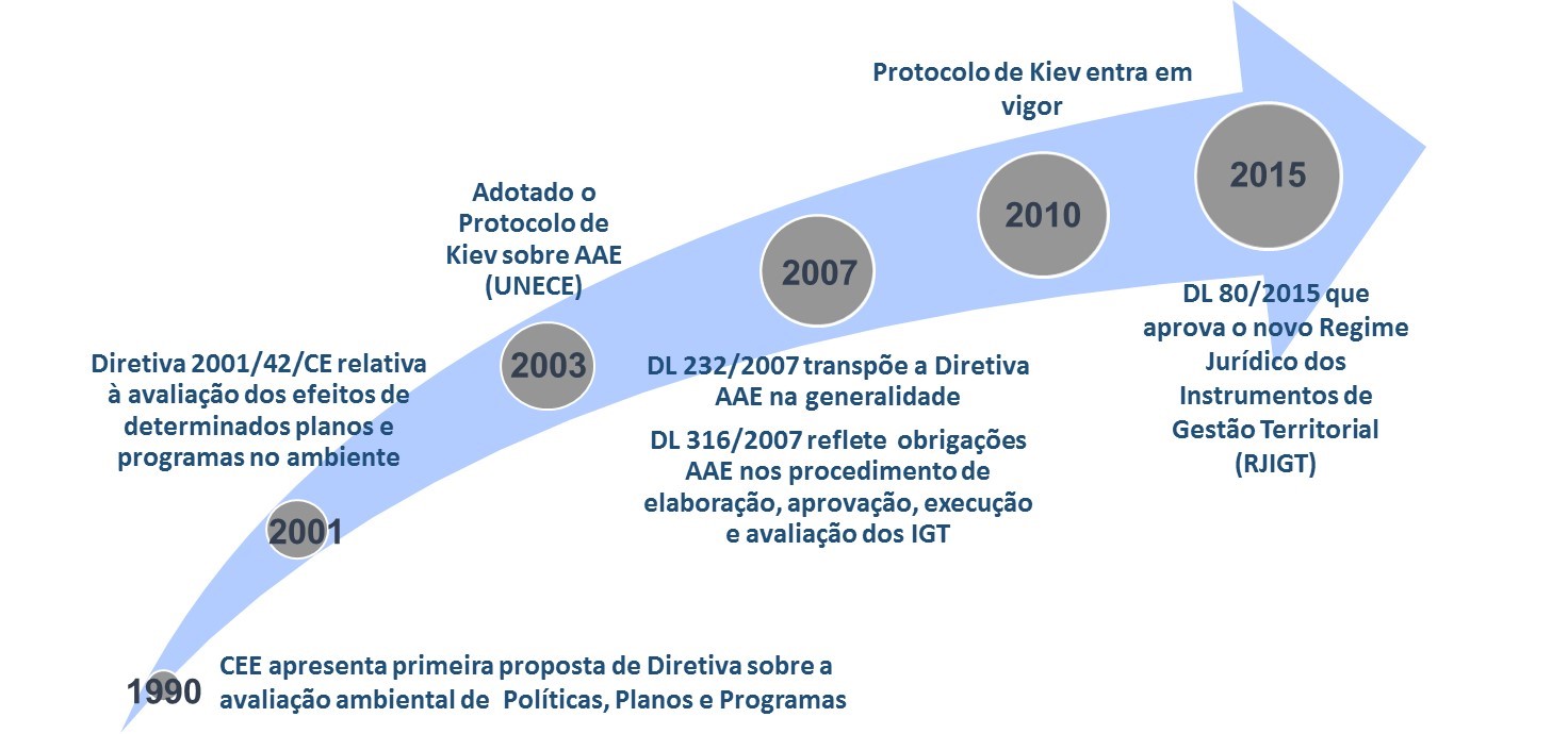 A Diretiva 2001/42/CE de 27 de junho, relativa à avaliação dos efeitos de determinados Planos e Programas no Ambiente está transposta em Portugal, no caso geral, pelo Decreto-Lei n.º 232/2007, de 15 de junho, alterado pelo Decreto-Lei n.º 58/2011, de 4 de maio, e no caso específico dos Instrumentos de Gestão Territorial, pelo Decreto-Lei n.º 80/2015, de 14 de maio.